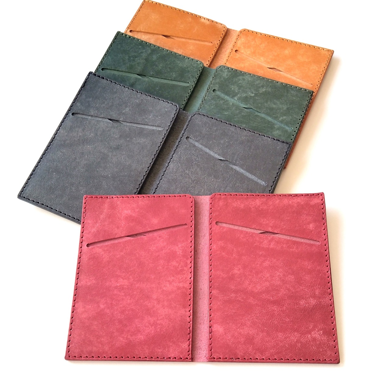 極薄革の二つ折りカードケース 4枚用 + 多用途ポケット マヤベリーversion【受注生産】