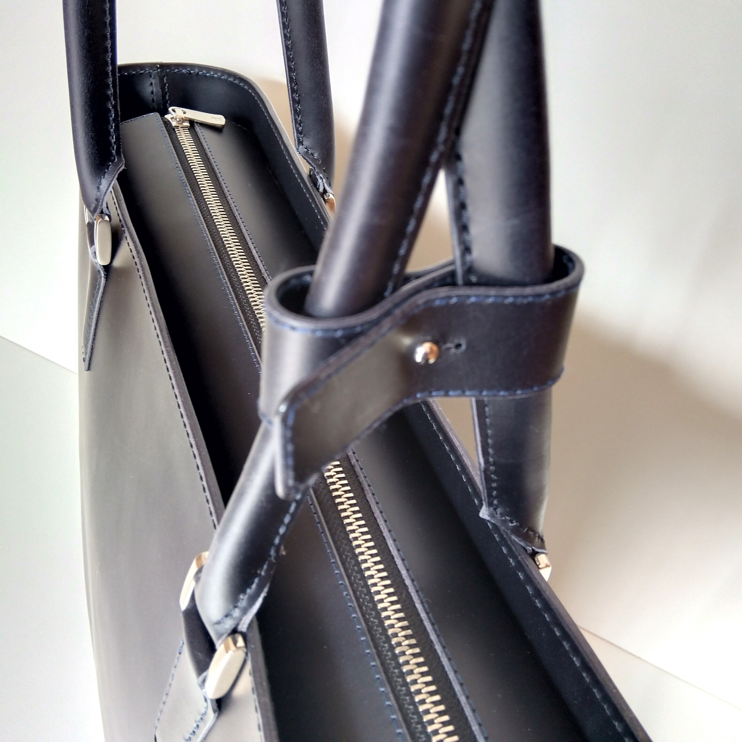 植物タンニン鞣しのイタリアンレザーで制作したオーソドックスな形のファスナートートバッグです。
